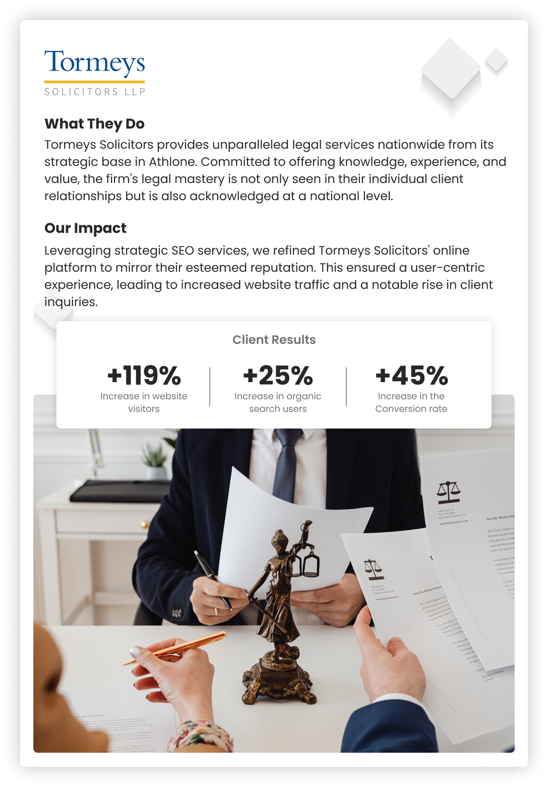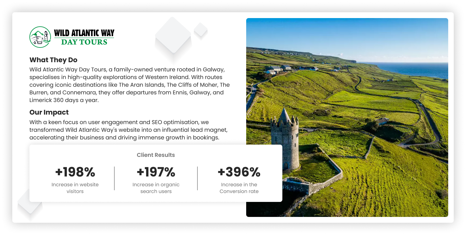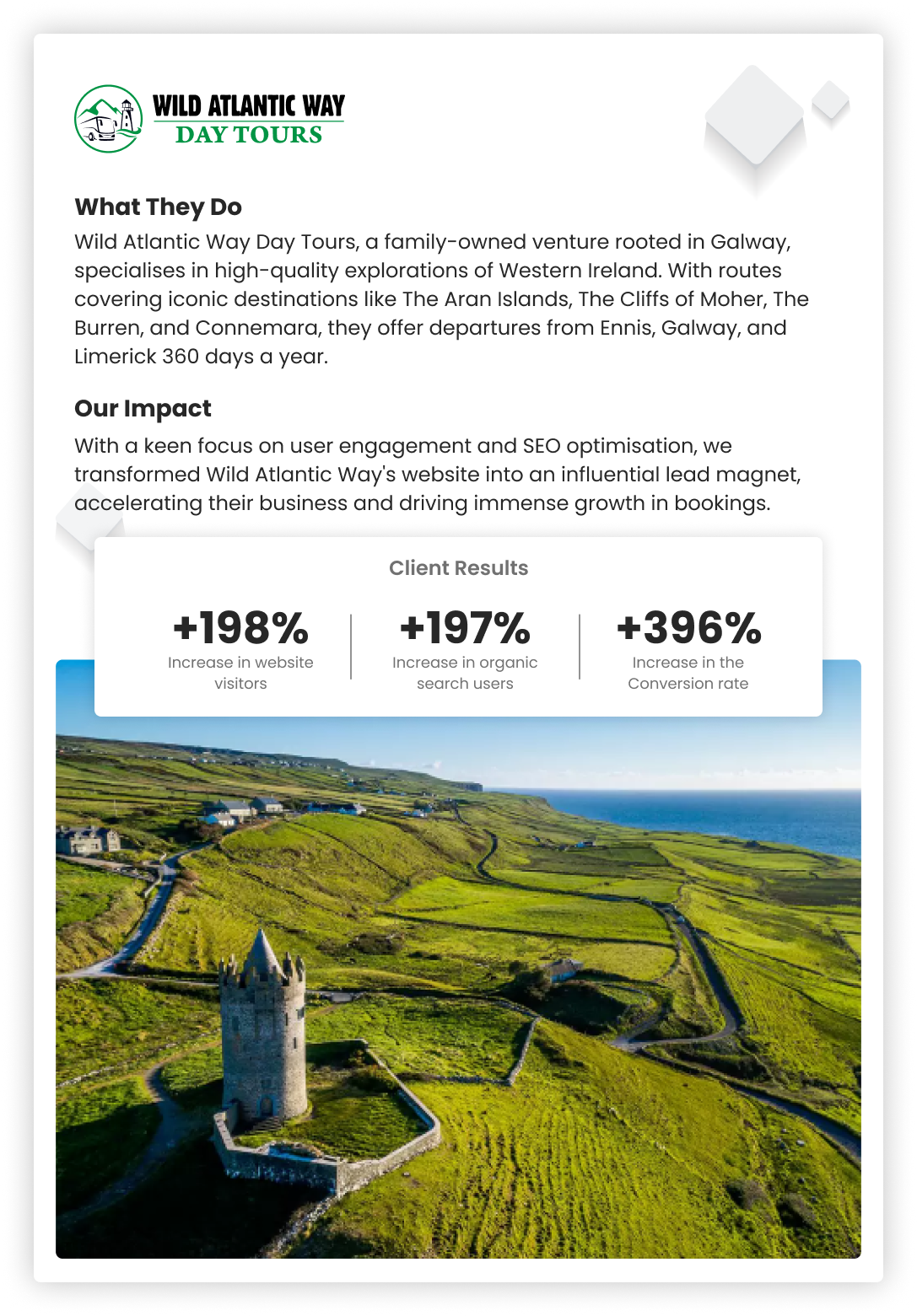 Discover the power of effective SEO with our comprehensive suite of services. Helping businesses across Ireland, we specialize in SEO, delivering results-oriented strategies that improve your online presence and fuel your business growth.