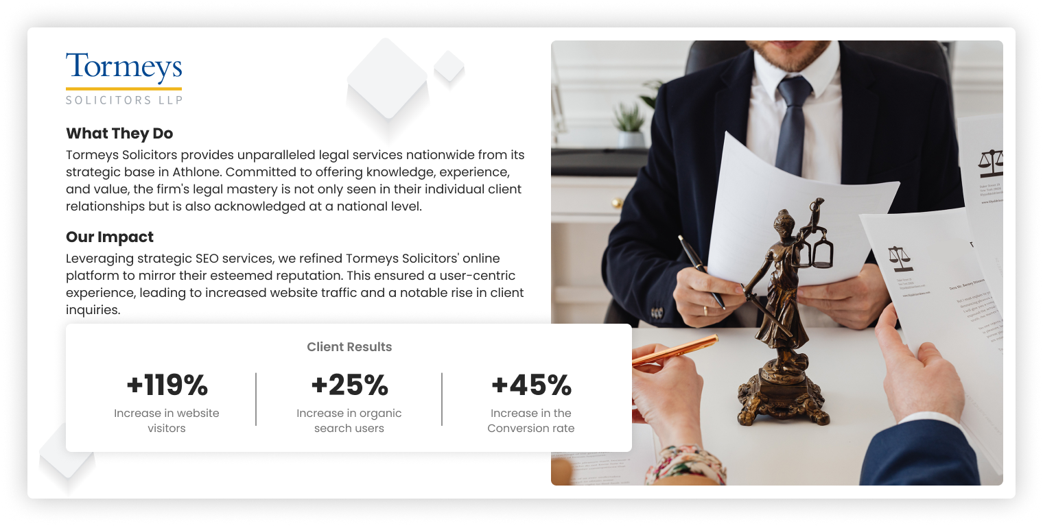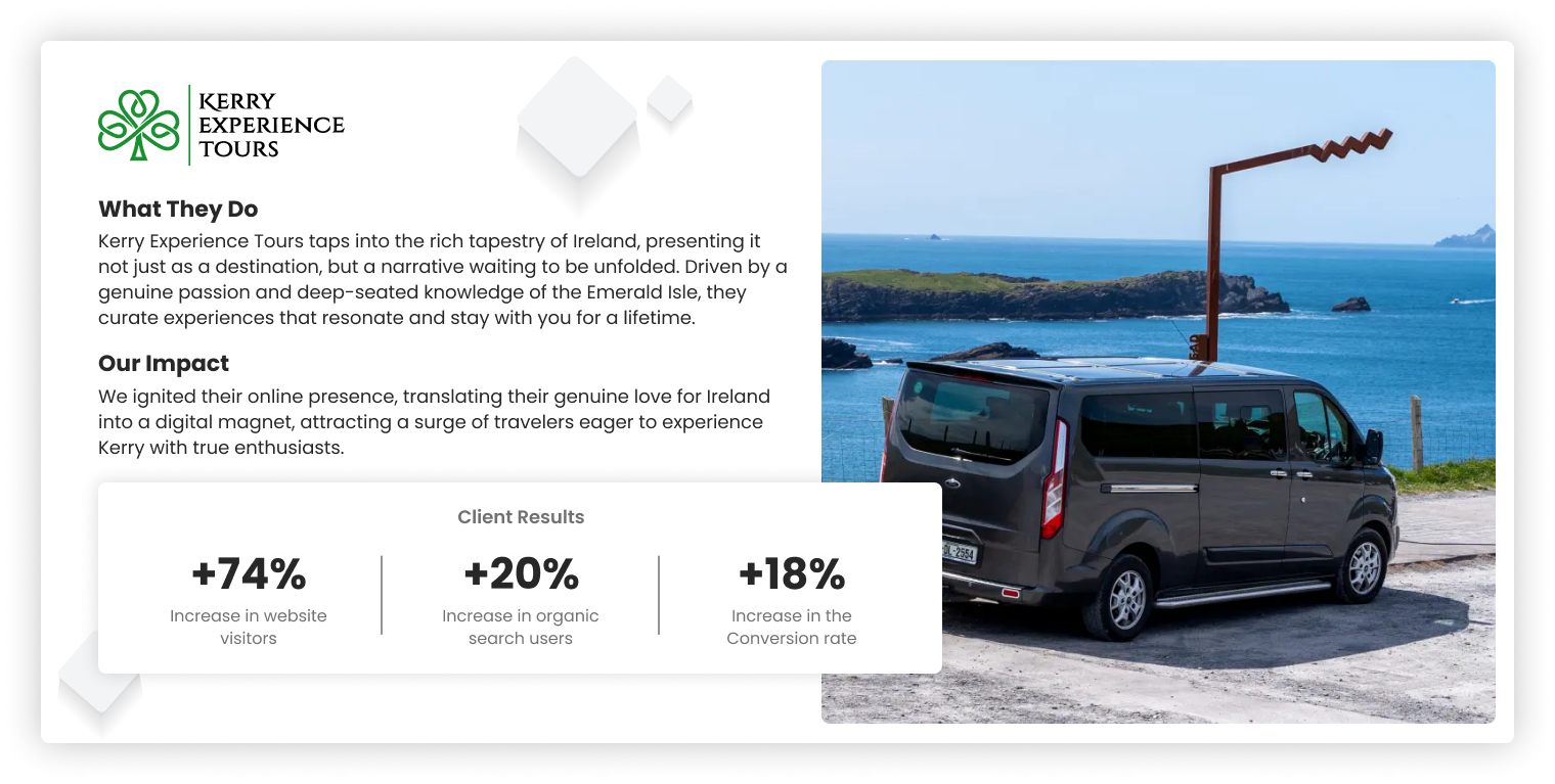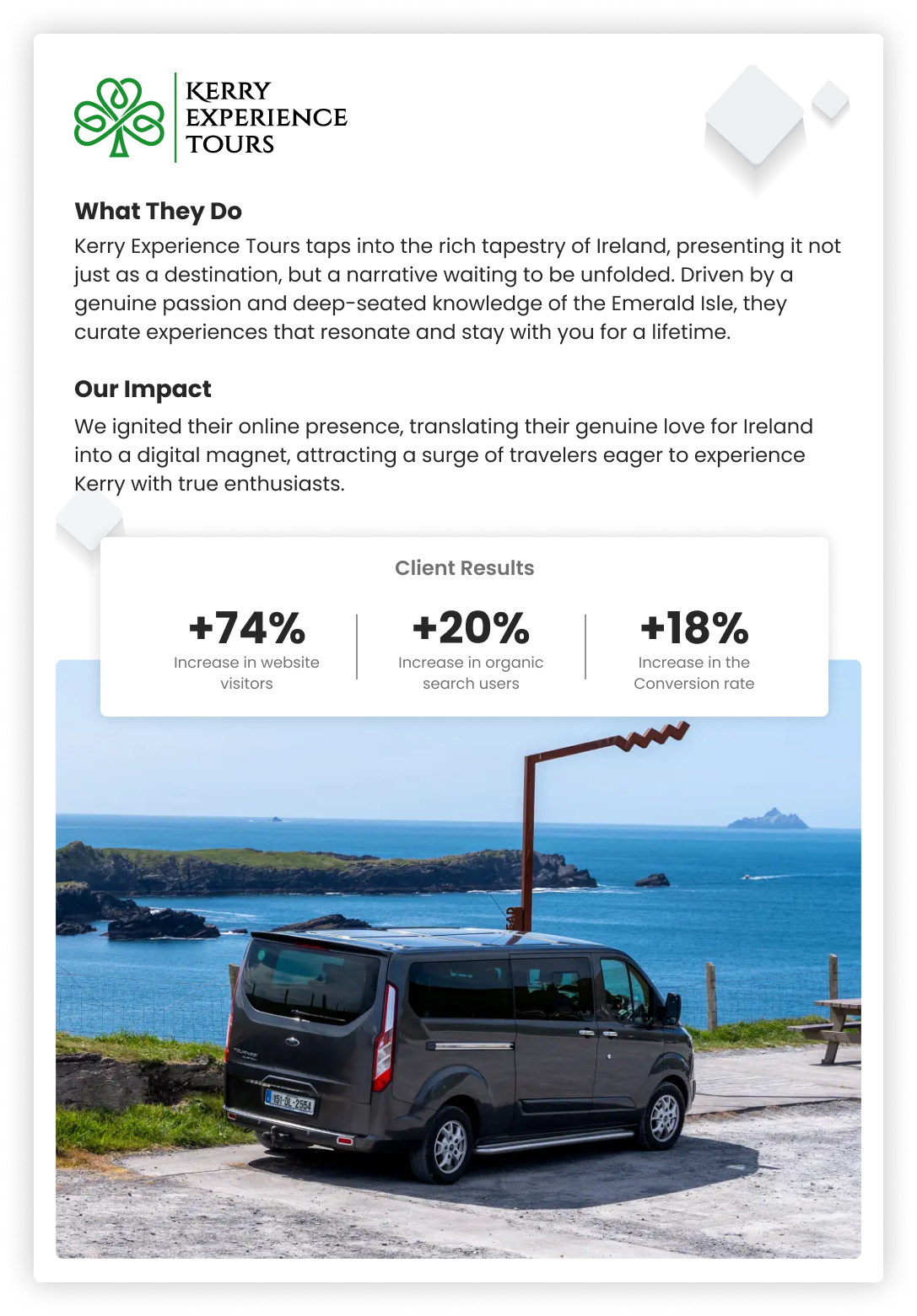 Discover the power of effective SEO with our comprehensive suite of services. Helping businesses across Ireland, we specialize in SEO, delivering results-oriented strategies that improve your online presence and fuel your business growth.